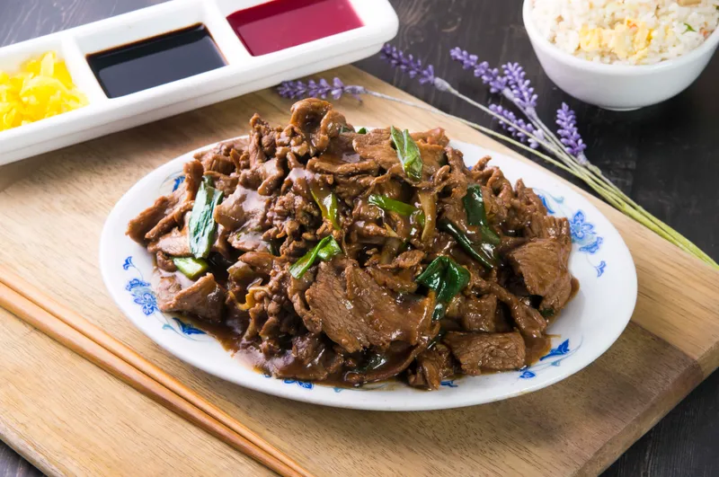 1 Wantan Frito, 1 Chapsui Pollo, 1 Carne Cebollín, 2 Arroz Chaufan